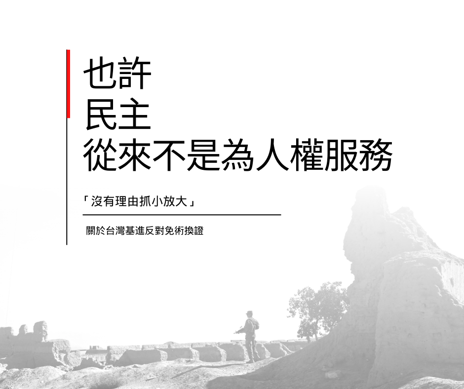台灣是一個民主的國家,這份進步,是用很多人透過自己的方式換來的。為什麼,要讓他們頭破血流犧牲生命後,我們後面才知道他們堅持的是對的?在民主前輩爭取報禁開放黨禁開放的時候,社會有多少反對的輿論?在性別運動的前輩爭取同志婚姻時,社會有多少反對的壓力?如今,在免術換證的風口浪尖上,我們又承擔了多少壓力?